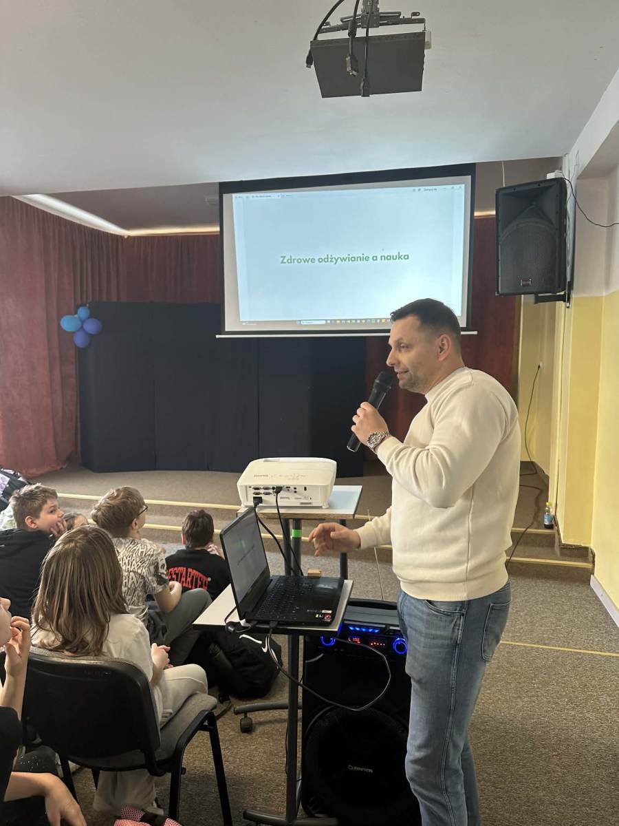 16 kwietnia uczniowie klas czwartych wzięli udział w spotkaniu z dietetykiem. Pan Ryszard Sypniewski w bardzo ciekawy sposób opowiadał o zasadach zdrowego odżywiania, które jest tak ważne dla dorastającego organizmu.